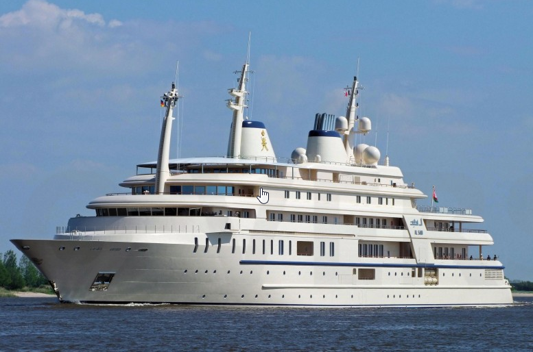 O tamanho médio das 200 embarcações é de aproximadamente 84 metros. Mas existem as grandes exceções, que chegam aos 180 metros! Algumas curiosidades: o quarto maior iate do mundo, o Al Said de 155 metros, tem uma tripulação de 150 pessoas! O Dubai, terceiro colocado com 162 metros, tem uma capacidade nos tanques de combustível de 1,2 milhões de litros! Uns R$ 4 milhões para encher o tanque com Verana… Seguem as fotos dos cinco maiores iates: